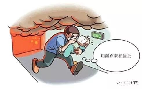 (8)逃生時(shí)。盡量采取保護(hù)措施,如用濕毛巾捂住口鼻、用濕衣物包裹身體。