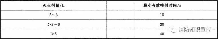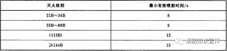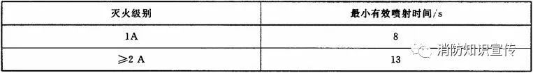 滅A類火的滅火器(水基型滅火器除外)在20℃時(shí)的最小有效噴射時(shí)間應(yīng)符合表3的規(guī)定。