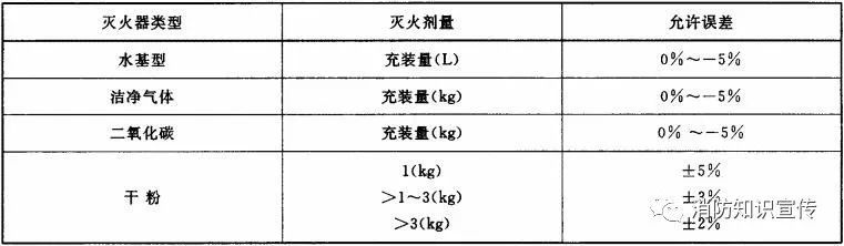 滅火器的總質(zhì)量不應(yīng)大于20 kg,其中二氧化碳滅火器的總質(zhì)量不應(yīng)大于23 kg,滅火器的滅火劑充裝總量誤差應(yīng)符合表1的規(guī)定。