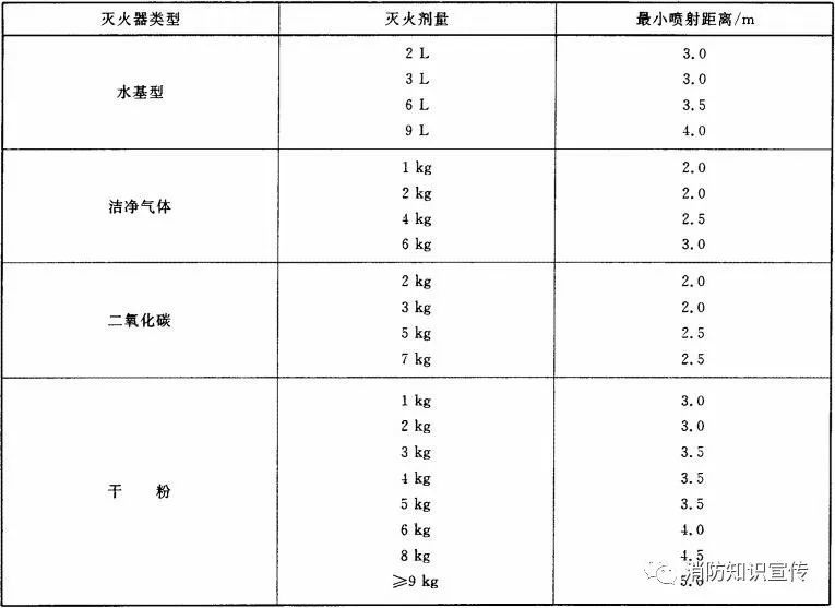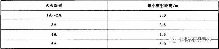 滅A類火的滅火器在20℃時(shí)的最小有效噴射距離應(yīng)符合表5的規(guī)定。