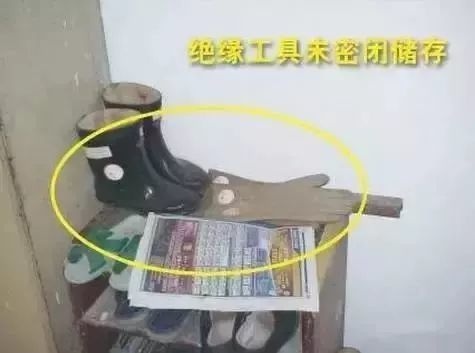 排查依據(jù):DB 11527-2008《變配電室安全管理規(guī)范》5.18.5 絕緣靴、絕緣手套應(yīng)存放在密閉的櫥內(nèi),并與其他工具一表分開存放。