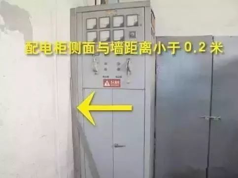排查依據(jù):JGJ 16-2008《民用建筑電氣設(shè)計規(guī)范》4.6.2 固定式開關(guān)柜靠墻布置時,柜后距離與墻凈距離應(yīng)大于0.05m,側(cè)面與凈墻距應(yīng)大于0.2m。
