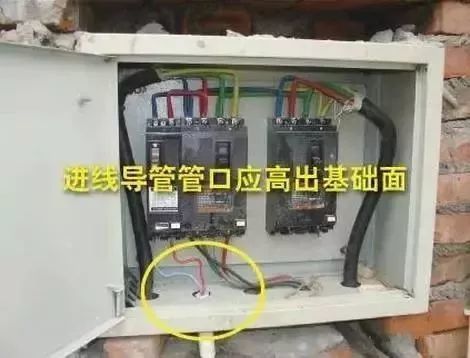 排查依據(jù):GB 50303-2002《建筑電氣工程質(zhì)量驗(yàn)收規(guī)范》14.2.5 室內(nèi)進(jìn)入落地式柜、臺、箱、盤內(nèi)的導(dǎo)管管口,應(yīng)高出柜、臺、箱、盤的基礎(chǔ)面50~80mm。