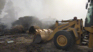 消防員到場通過偵查發(fā)現(xiàn),起火點為堆積了草垛及廢品的倉房,火勢正處于猛烈燃燒階段,起火倉房北側(cè)緊鄰一間民房,火勢仍有蔓延趨勢。根據(jù)現(xiàn)場情況,消防員立即對現(xiàn)場進行斷電;戰(zhàn)斗一組直打倉房火點,壓制火勢;戰(zhàn)斗二組疏散民房內(nèi)的危險易爆物品,并利用直流水槍直打民房,阻止倉房火勢向民房蔓延;安全警戒組疏散附近圍觀群眾,并時刻觀察倉房情況,以防發(fā)生坍塌危險,及時發(fā)出安全預(yù)警。火勢得到控制后,消防員利用無齒鋸、大錘等工具,對倉房鐵皮進行破拆,開拓出一條進攻通道。在滅火過程中,現(xiàn)場群眾開來鏟車、挖掘機協(xié)助消防員對火勢進行壓制。