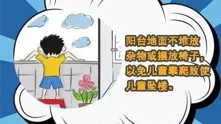 4、陽臺(tái)地面不堆放雜物或擺放椅子,以免兒童攀爬致使墜樓;