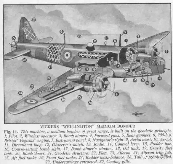 本文的主角機(jī)就是這么一臺英國轟炸機(jī)——維克斯工廠榮譽(yù)出品的“威靈頓”(Vickers Wellington Bomber)轟炸機(jī),這種轟炸機(jī)在后世少有提及,因?yàn)樗慕犹嬲咛m開斯特太有名,掩蓋了威靈頓的光輝,要知道皇家空軍曾經(jīng)在長達(dá)五六年的時間里,只能依靠威靈頓進(jìn)行轟炸。