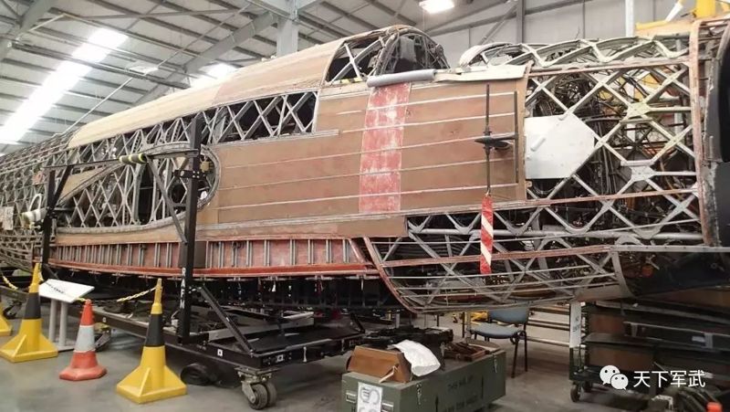 上圖是隸屬皇家空軍第428中隊(duì)的威靈頓MK.X,它的機(jī)尾被一發(fā)88mm高爆彈擊中,尾炮炮塔整個炸飛了,垂尾和平尾也破爛不堪,但在網(wǎng)格型結(jié)構(gòu)加持下,它居!然!飛!回!來!了!這種設(shè)計(jì)的有效性可見一斑。