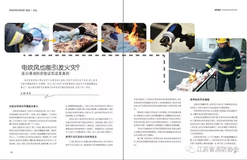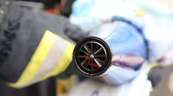 消防隊(duì)員準(zhǔn)備好了功率為3200W 的吹風(fēng)機(jī)、毛巾、襪子、毛毯等道具,首先進(jìn)行第一個實(shí)驗(yàn):用毛巾覆蓋住一個沒有過熱保護(hù)裝置的吹風(fēng)機(jī)末端風(fēng)扇口,還在出風(fēng)口放了幾片紙屑。打開吹風(fēng)機(jī),不到一分鐘的時間,吹風(fēng)機(jī)出風(fēng)口的發(fā)熱線圈開始發(fā)紅,紙屑變成火星“飛”了出來。