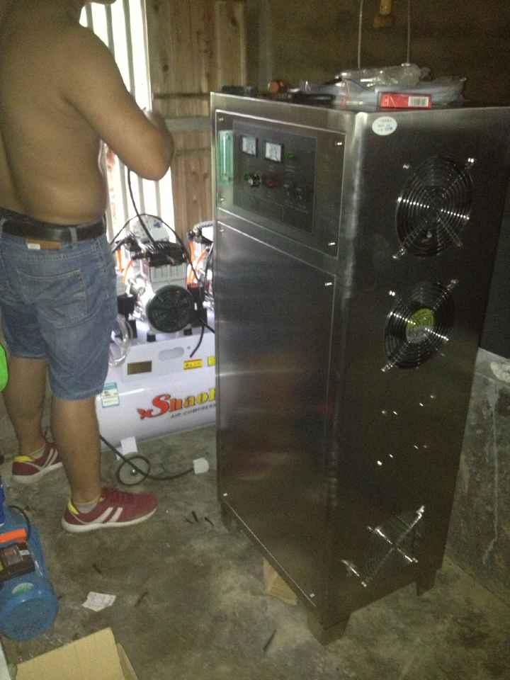 五、臭氧殺菌消毒技術在水產養殖中的優越性 1、臭氧可以從根本上改善養殖育苗水質、可防治病害,控制赤潮及滅菌消毒等。經臭氧處理后的水可以改善細胞呼吸條件,促進生物生長。用其進行水產育苗和幼魚培育,可以大幅度降低幼苗死亡率,大大提高魚、蝦、貝類育苗和養殖的成活率。 2、臭氧具有強烈的殺菌消毒和水質凈化作用,而且無毒無害,是水產養殖和育苗生產中最理想的殺菌凈化劑,對防治魚、蝦、海膽、河蟹、甲魚等生物病害,改善水產養殖的生態環境起到重要作用。 3、明顯提高飼料的轉化率,促進生長,提高產量。 4、應用臭氧可降解水中的有機物、氨氮、亞硝酸鹽等物質,并殺滅水中的致病菌和浮游生物。 5、避免水質污染,如赤潮的發生;避免因周邊養殖池的污染、病毒而造成的交叉感染;避免水質惡化和池底污染。 6、降低消耗,降低生產成本。總之水產養殖中使用臭氧消毒設備,成套的設備價格并不高,一次性投資也不大,而且可節約各種消毒劑,抗菌素,還可以減少換水量,節約燃料煤,應用臭氧育苗,其成活率至少可提高一倍以上而且一套設備可使用數年,從而既可大大節省養殖成本,又可培育出綠色環保食品,從各個方面講是比較經濟的。目前日本及歐美等大部分國家已廣泛采用臭氧進行養殖,并禁止采用氯化物等化學消毒劑進行養殖而造成含氯素過高的產品進入其市場。水產養殖臭氧發生器 1.去除糞便和污水所產生的氨氣和硫化氫等有害氣體的氣味。 2.減少畜禽的呼吸系統疾病,提高畜禽的養殖密度。 3.迅速清除蚊蠅等害蟲,減少化學殺蟲劑在養殖場的使用量。 4.減少飼養成本并縮短育肥時間(提高飼料的轉化率)。 5.減少有害物質在畜禽內的殘留量,提高肉、蛋、奶的質量。 6.生產環境符合國家環保最新的法律法規的要求。 7.減少瘟疫的發生;殺死空氣中的各類病菌
